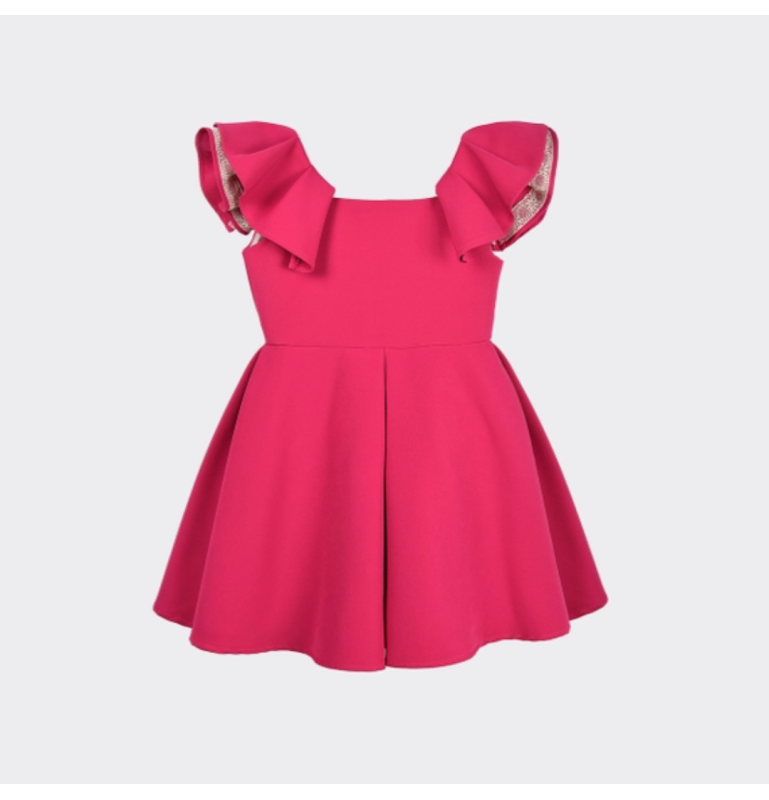 Une jolie robe avec double volants pour une jolie princesse. Ses doubles manches volantes descendent des épaules vers le dos, créant un bel effet cascade.