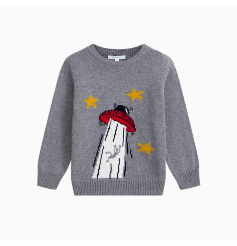 Pull tout doux avec dessin d'un vaisseau spatial sur le devant.